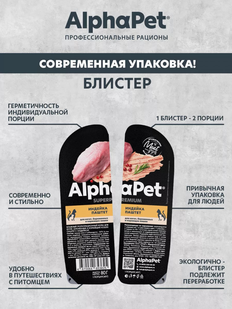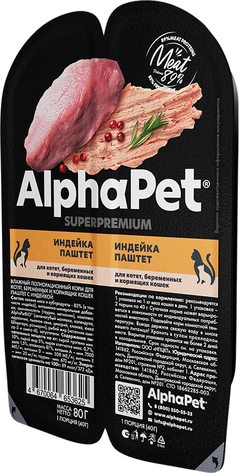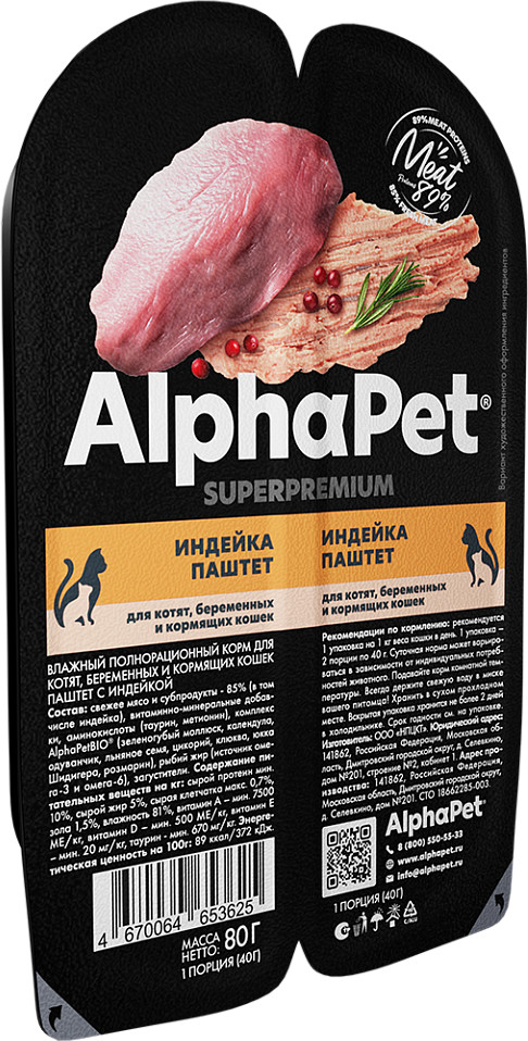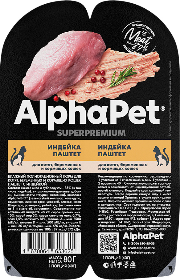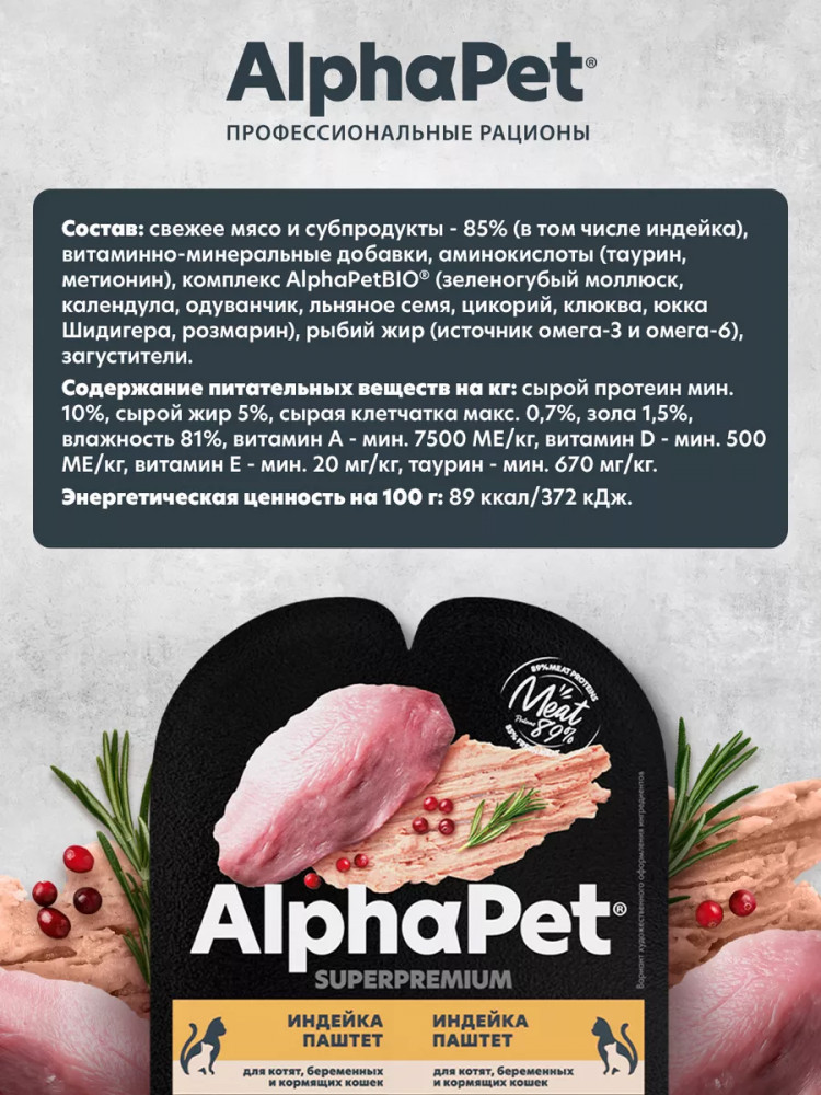 AlphaPet Корм для котят, беременных и кормящих кошек «Паштет с индейкой»
