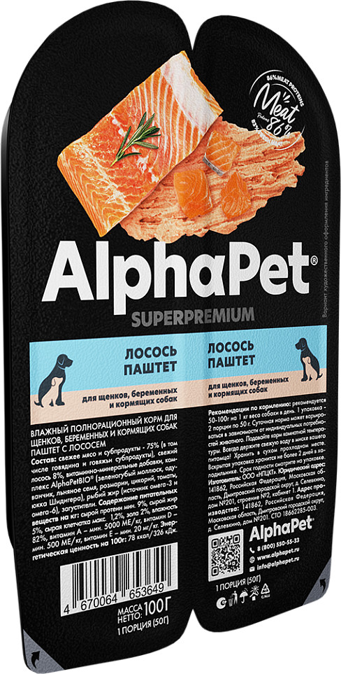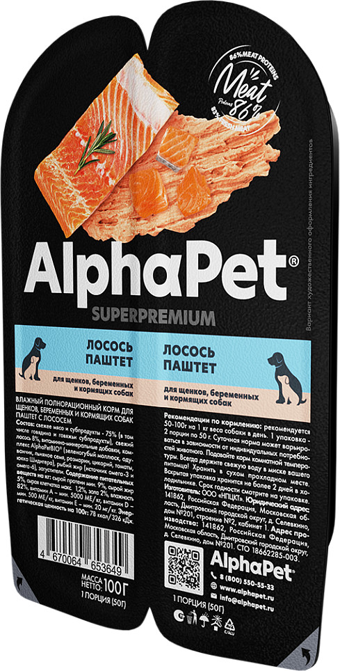 AlphaPet Корм для щенков, беременных и кормящих собак «Паштет с лососем»