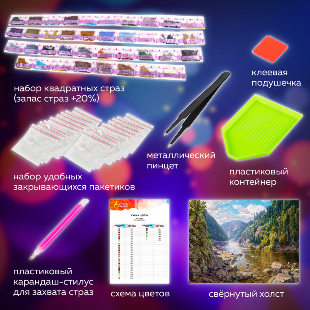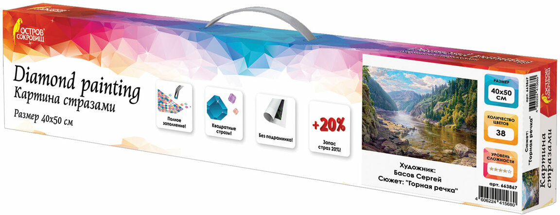 💳 Оплатить за товар можно при получении 🇰🇿 Есть бесплатная доставка по Казахстану от 1 дня 🎁 Копите бонусы с каждой покупки Картины стразами Остров Сокровищ — это наборы для создания картин в технике алмазной мозаики с сюжетами известных российских художников. В наборе содержится все необходимое для создания шедевра своими руками. Картина стразами «Горная речка» основывается на одноименном произведении российского художника Басова Сергея. |