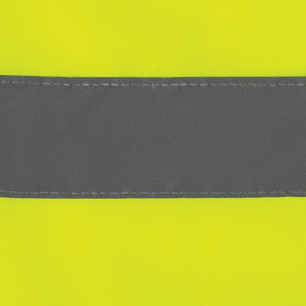 Сочетание неонового лимонного цвета и светоотражающих полос обеспечивает его заметность как днем, так и в темное время суток. Жилет с центральной застежкой на ленту-липучку надевается поверх другой одежды. Изделие соответствует второму классу защиты, изготовлено из 100% полиэстера плотностью 120 г/м2. Ширина светоотражающей ленты — 50 мм.