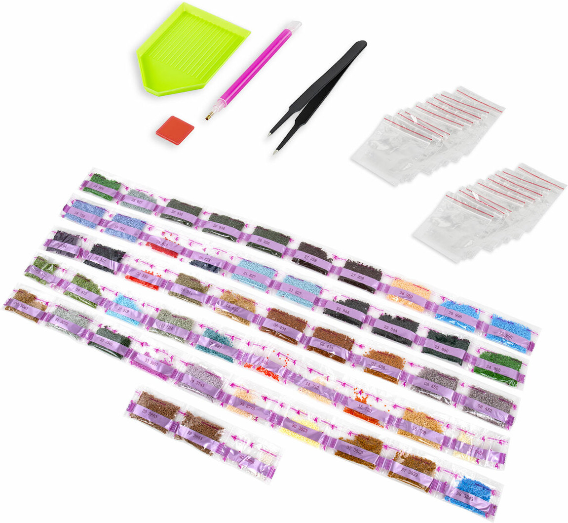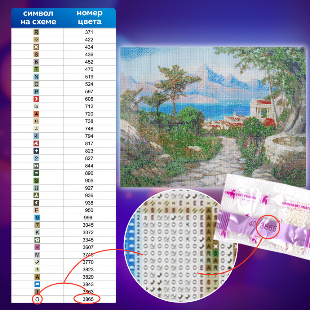 • набор квадратных страз разных цветов, пронумерованных в соответствии со схемой;