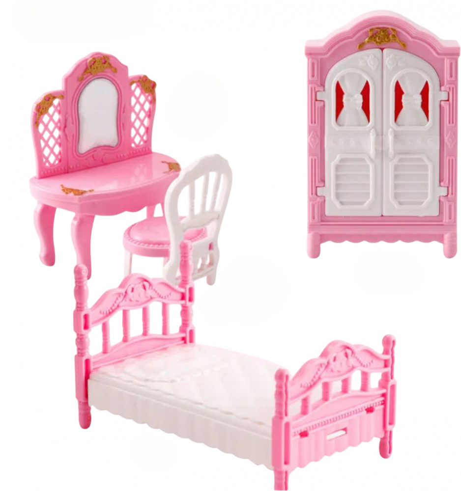 Набор мебели для кукольного домикаВ данный момент этот товар отсутствует в продаже. Возможно, у нас найдется аналогичный или похожий товар здесь. Набор мебели станет ярким дополнением к кукольному домику. Подходит для кукол и пупсиков маленького размера. Он разнообразит сюжетно-ролевую игру, позволив создавать новые истории и устраивать приключения в своем маленьком мире. В наборе вы найдете всю необходимую мебель: удобную кроватку, шкаф для вещей, тумба с зеркалом, стул. Благодаря компактным размерам с ним можно играть — дома, брать с собой в детский сад или даже на улицу, в песочницу. |
