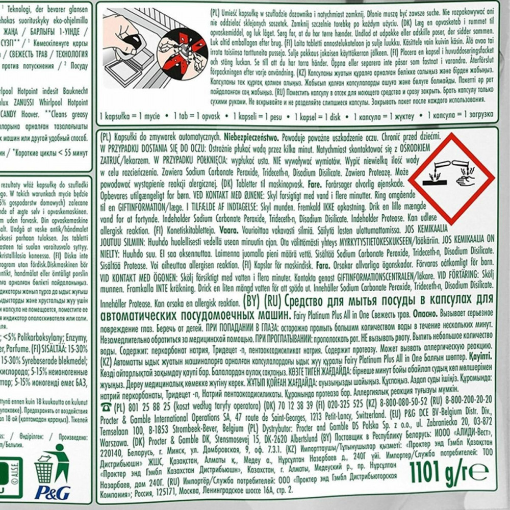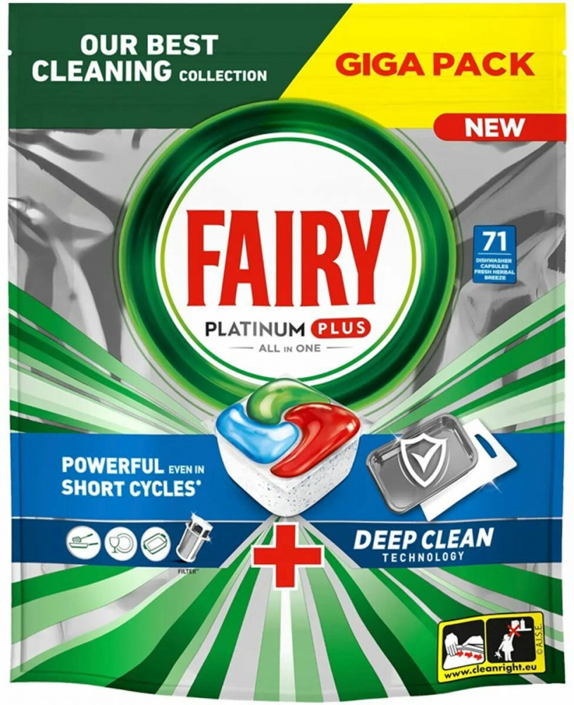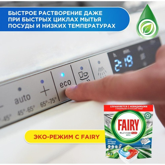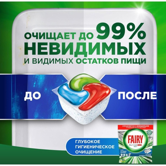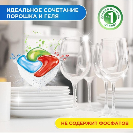 Капсулы для посудомоечной машины обеспечивают самое лучшее очищение и помогают удалить даже образовавшийся со временем налет, возвращая посуде ее первоначальный блеск. Капсулы оснащены встроенной системой предварительного ополаскивания и выполняют этот шаг за Вас. Теперь не нужно предварительно смывать остатки еды с посуды, что позволяет экономить воду и делает мытье посуды более экологичным. Fairy объединяет гель и порошок в одной мощной капсуле. Оболочка капсулы быстро растворяется в воде и подходит для коротких циклов мытья посуды, ведь средство начинает работать незамедлительно. А еще капсулы очень удобно использовать! Не нужно разворачивать — просто поместите их в отсек посудомоечной машины для моющего средства.