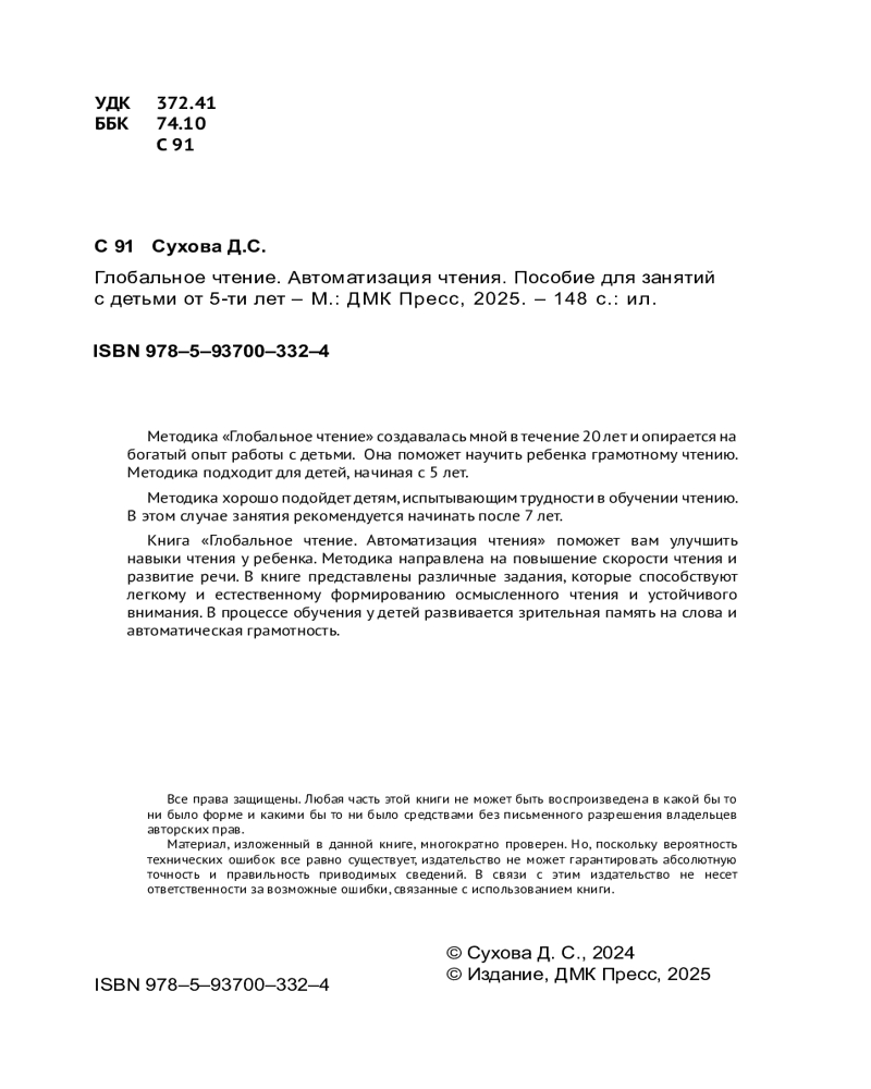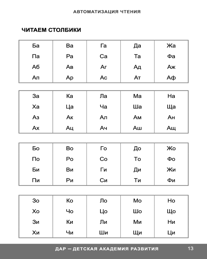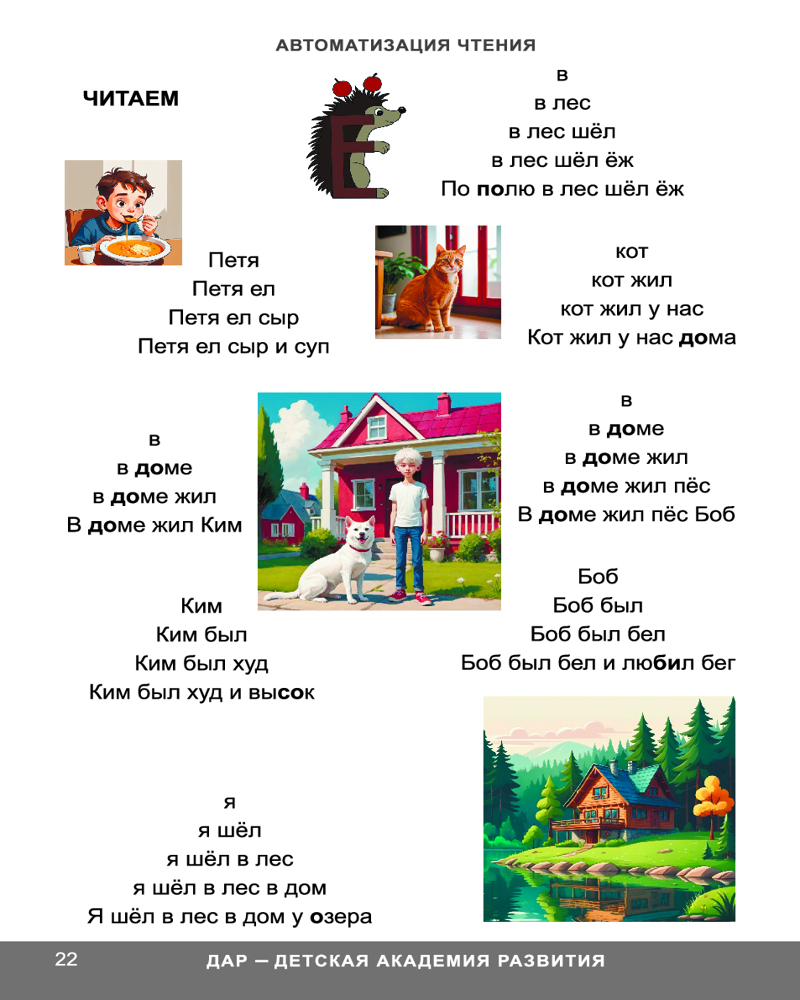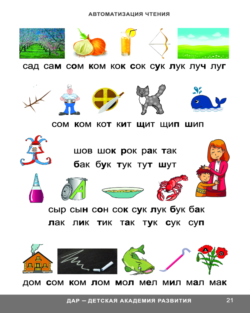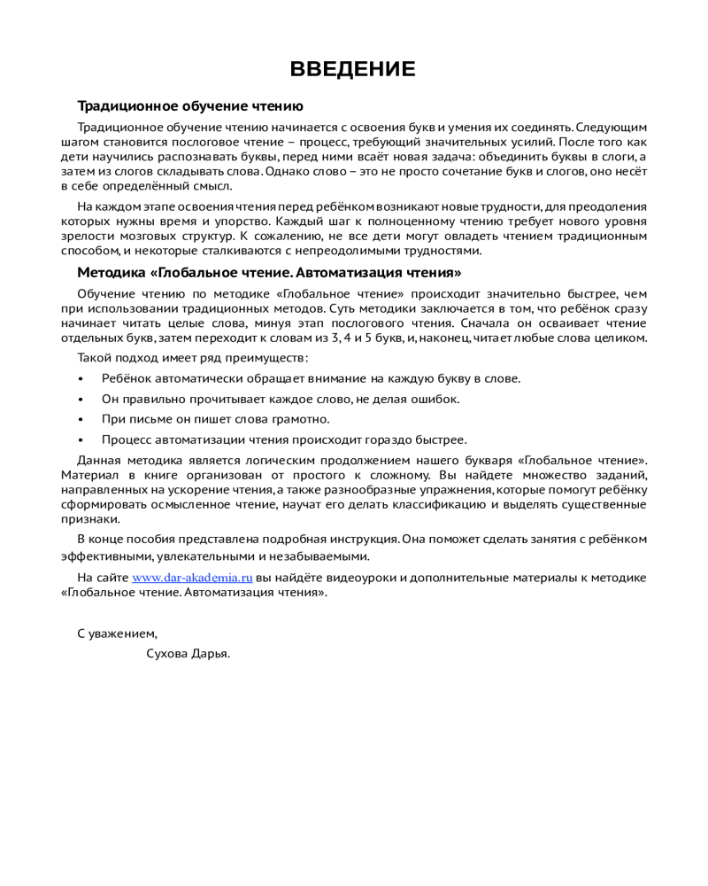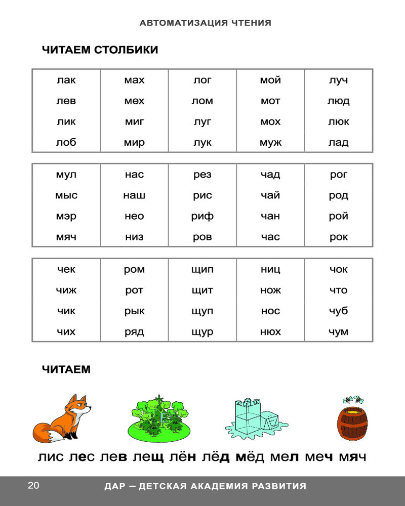 Глобальное чтение. Автоматизация чтенияВ данный момент этот товар отсутствует в продаже. Возможно, у нас найдется аналогичный или похожий товар здесь. Методика «Глобальное чтение» создавалась автором в течение 20 лет и опирается на богатый опыт работы с детьми. Она поможет научить ребенка грамотному чтению, а также хорошо подойдет детям, испытывающим трудности в обучении чтению. Вторая часть двухтомника «Автоматизация чтения» направлена на повышение скорости чтения и развитие речи. В ней представлены различные задания, которые способствуют легкому и естественному формированию осмысленного чтения и устойчивого внимания. В процессе обучения у детей развивается зрительная память на слова и автоматическая грамотность. Издание предназначено детям от пяти лет и их родителям. |