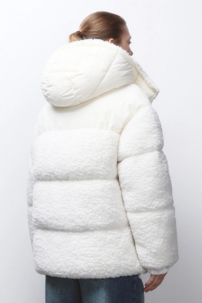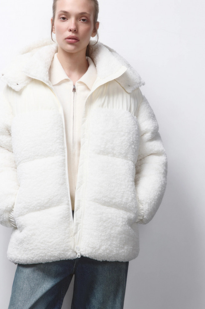 Стеганая женская куртка свободного кроя из гладкой ветроотталкивающей ткани с плащевой фактурой с легким искусственным утеплителем (синтепух). Высокий воротник-стойка и несъемный капюшон с утяжками на стопперах и с застежкой на кнопки. Длинные свободные рукава с присборенными манжетами и спущенной линией плеча. Застежка на молнию. Два прорезных боковых кармана без застежки. Прямой нижний край с утяжками на стопперах по бокам. Базовый однотонный пуховик для стильных повседневных аутфитов. Легкий и стильный непродуваемый пуховик на зиму, который защитит тебя от самых злых ветров, морозов, снегопадов и других неожиданностей погоды. Универсальный и практичный зимний пуховик свободного кроя, под который можно надевать свои любимые утепленные вещи.