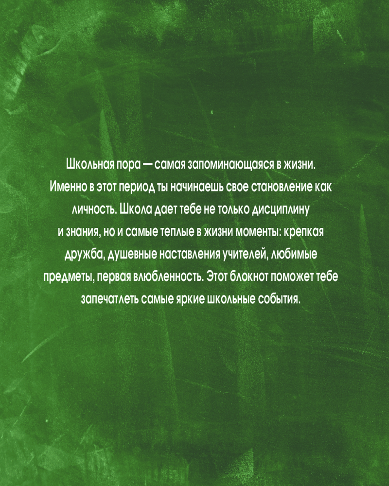 💳 Оплатить за товар можно при получении 🇰🇿 Есть бесплатная доставка по Казахстану от 1 дня 🎁 Копите бонусы с каждой покупки Серия: Блокнот. Подарочная коллекция Школьная пора — самая запоминающаяся в жизни. Именно в этот период ребенок начинает свое становление как личность. Школа дает ему не только дисциплину и знания, но и самые теплые в его жизни моменты: крепкая дружба, душевные наставления учителей, любимые предметы, первая влюбленность. Этот блокнот поможет вам запечатлеть самые яркие школьные события! |