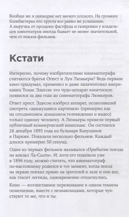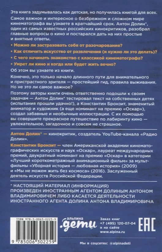 💳 Оплатить за товар можно при получении 🇰🇿 Есть бесплатная доставка по Казахстану от 1 дня 🎁 Копите бонусы с каждой покупки Эта книга задумывалась как детская, но получилась книгой для всех. Самое важное и интересное о безбрежном и сложном мире кинематографа вы узнаете в кратчайший срок. Антон Долин, один из самых известных российских кинокритиков, разобрал главные вопросы о кино и постарался дать на них простые и внятные ответы. |