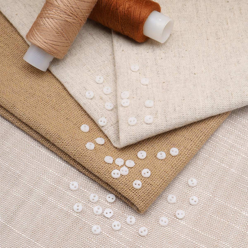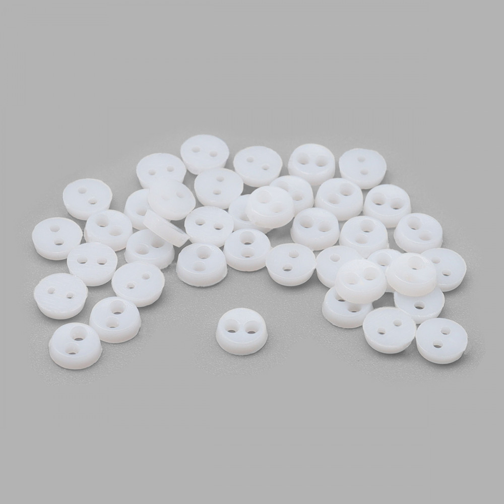 Изготовлены из пластика. Тип пуговиц — «на прокол» с двумя отверстиями для пришивания.