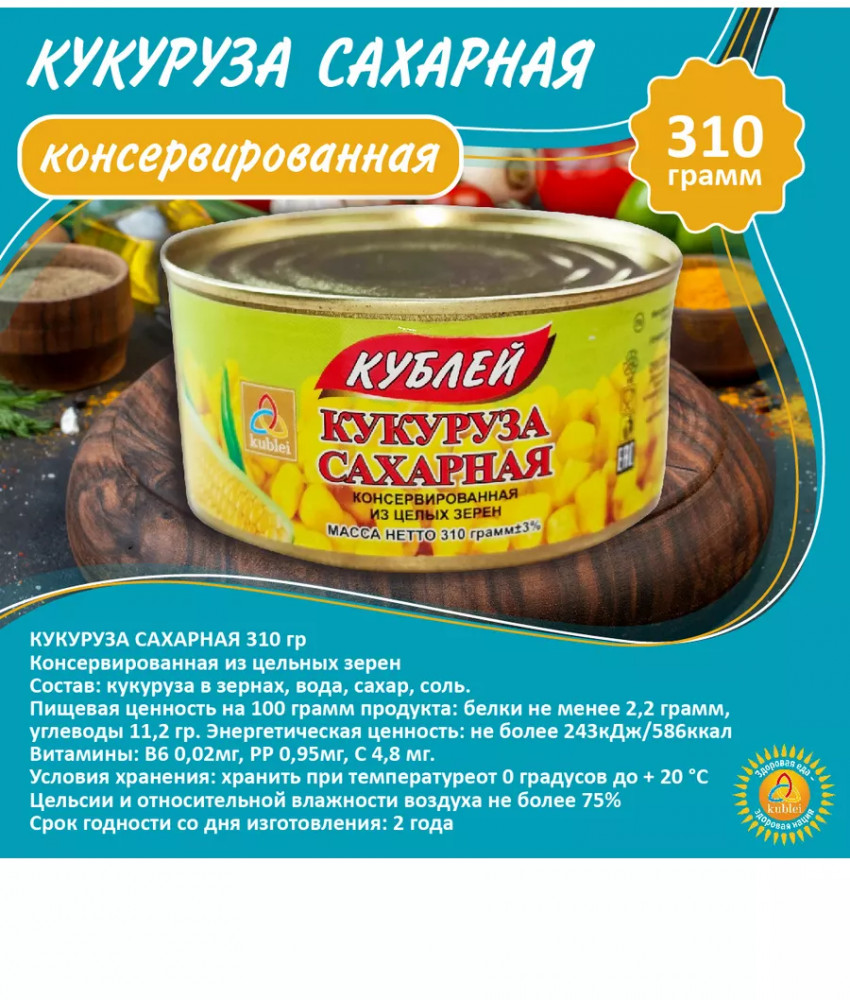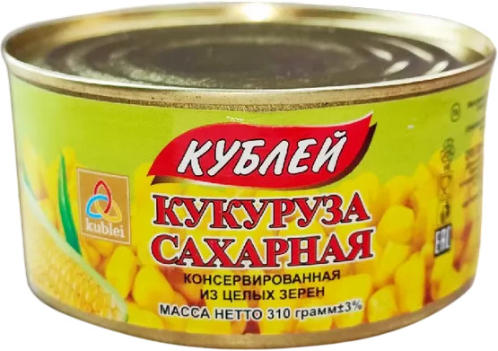 Кублей Кукуруза сахарная консервированная из целых зерен