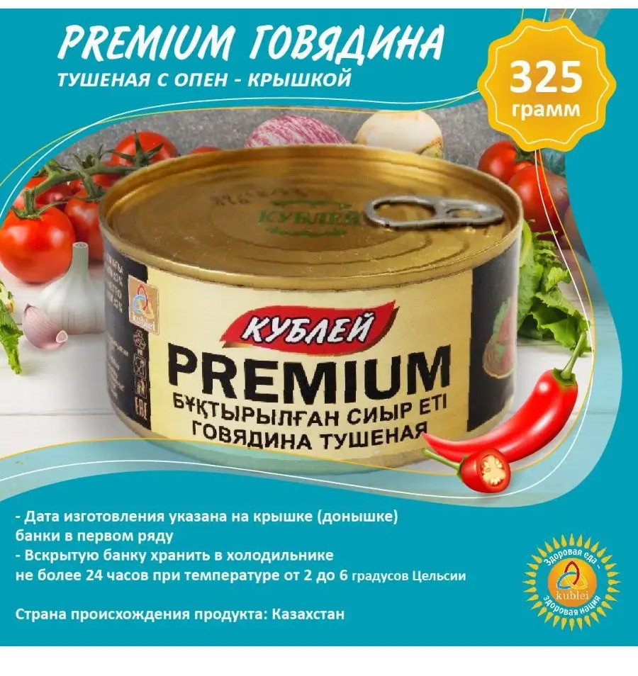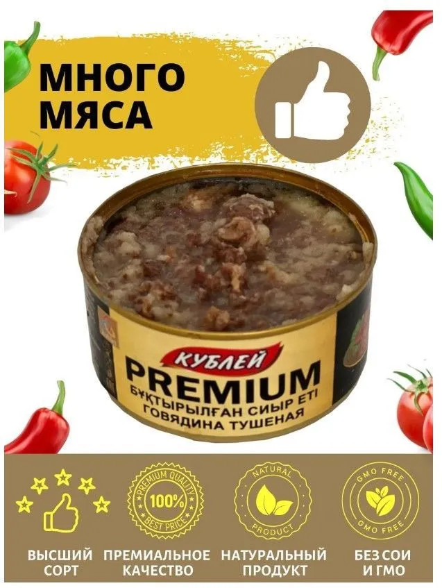 💳 Оплатить за товар можно при получении 🇰🇿 Есть бесплатная доставка по Казахстану от 1 дня 🎁 Копите бонусы с каждой покупки Говядина тушеная изготовлена из отборной говядины с добавлением специй. Продукт отличается насыщенным в меру соленым вкусом и притягательным ароматом с пряными нотками. Сочное мясо имеет однородную консистенцию. В составе только натуральные ингредиенты без искусственных добавок. Выпускается продукт в удобной жестяной банке с ключом, которая сохраняет превосходный вкус и аромат. Говядина прекрасно сочетается с различными гарнирами и станет отличным ингредиентом для приготовления вкусного и сытного обеда или ужина. Кублей — консервированные вторые обеденные блюда, качественные и 100% натуральные консервы мясные от казахстанского производителя! |