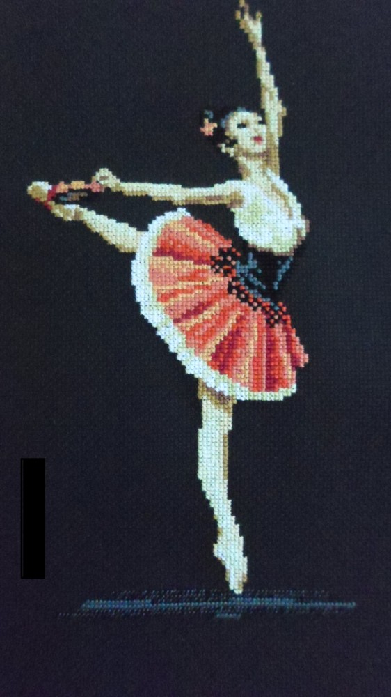 Хороший наборчик для вышивания крестиком! Милая статуэтка балеринки получилась! Я внесла свои изменения: вышивала не в 2 ниточки, как по инструкции, а в 3, чтобы плотнее легли крестики и не светилась канва, и при этом всех ниток хватило! Еще одно моё отступление от инструкции - внизу картинки вместо черных крестиков, я вышивала полукрестики миксом из 2 черных ниток плюс 1 ниточка серого цвета. Результат понравился! Осталось подобрать достойное оформление. Попробую вставить фото своей работы.