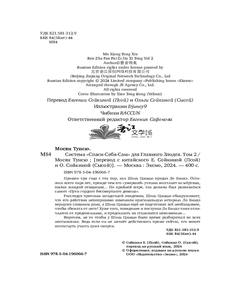 💳 Оплатить за товар можно при получении 🇰🇿 Есть бесплатная доставка по Казахстану от 1 дня 🎁 Копите бонусы с каждой покупки Серия: Хиты китайского фэнтези Прошло три года с тех пор, как Шэнь Цинцю предал Ло Бинхэ. Осталось всего пару лет, прежде чем его «умерший» ученик восстанет из мёртвых, пылая жаждой отмщения... По крайней мере, так должен был развиваться сюжет «Пути гордого бессмертного демона». Расследуя причины загадочной эпидемии, Шэнь Цинцю обнаруживает, что его действия непоправимо изменили оригинальную историю. Ло Бинхэ вернулся слишком рано, а Шэнь Цинцю ещё не подготовил всё необходимое, чтобы сбежать от него! Хуже того, поведение и поступки Ло Бинхэ тоже отличаются от предписанных, и предсказать их становится невозможно... Впрочем, не то чтобы у Шэнь Цинцю было время разбираться во всех нестыковках. Ведь если он не начнёт действовать прямо сейчас, его может постигнуть участь хуже смерти. |