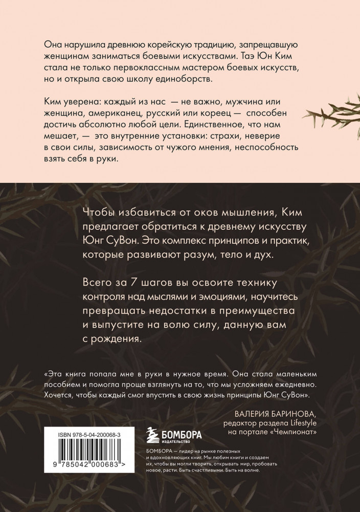 💳 Оплатить за товар можно при получении 🇰🇿 Есть бесплатная доставка по Казахстану от 1 дня 🎁 Копите бонусы с каждой покупки Серия: Культовые книги по саморазвитию. Оформление в азиатском стиле Когда разум захламлён суетой, тревогой и плохими мыслями — наша энергия рассеивается. Это происходит снова и снова, и мы становимся слабыми и неэффективными. Более того, в такой ситуации мы не можем быть честными с собой. Цель искусства Чунсувон — дать практические инструменты, благодаря которым вы сможете освободиться от ограничивающих, пагубных состояний ума, взглянуть на себя с разных сторон и пробудить свой невероятный потенциал к созданию жизни. |