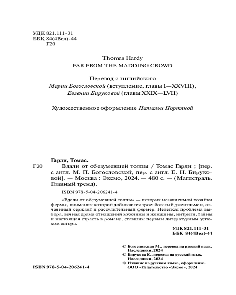 💳 Оплатить за товар можно при получении 🇰🇿 Есть бесплатная доставка по Казахстану от 1 дня 🎁 Копите бонусы с каждой покупки Серия: Магистраль. Главный тренд «Вдали от обезумевшей толпы» — история независимой хозяйки фермы, внимания которой добиваются трое: богатый джентльмен, отчаянный сержант и рассудительный фермер. Нелегкая проблема выбора, вечная драма отношений мужчины и женщины, интриги, тайны и настоящая страсть в романе, ставшем первым литературным успехом автора. Гарди удивительным образом затронул струны души читателей трех столетий. Его роман по-прежнему считается скандальным и нарушающим основы основ уже нынешнего общества. |