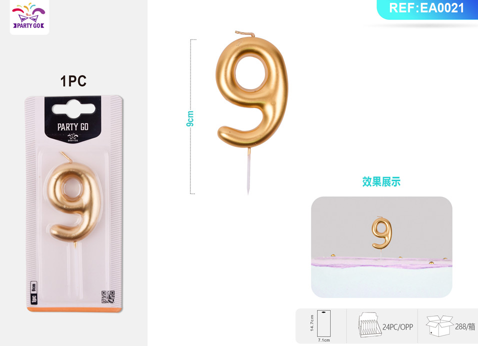 Party go Свеча для торта цифра 9 «Golden glow»