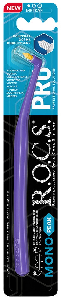 R.O.C.S. Зубная щётка монопучковая «Pro mono peak»-25% +84 монопучок труднодоступные места класс