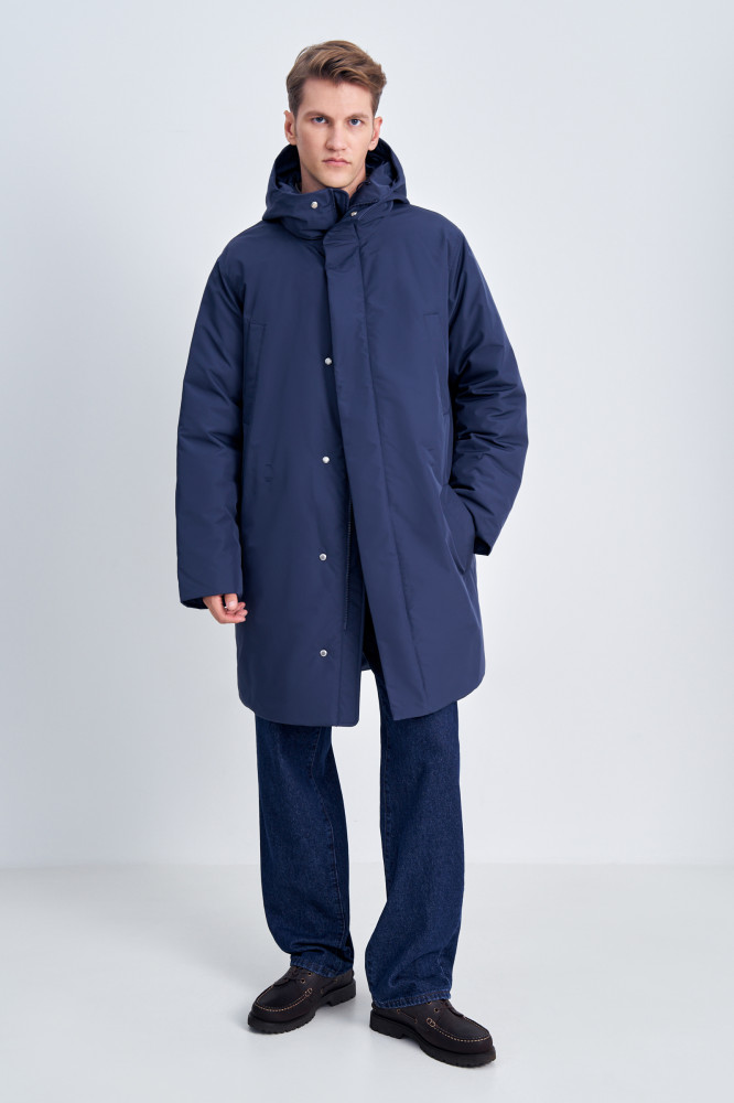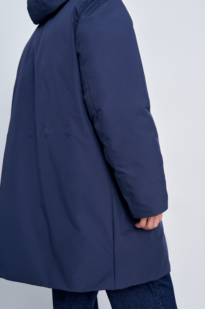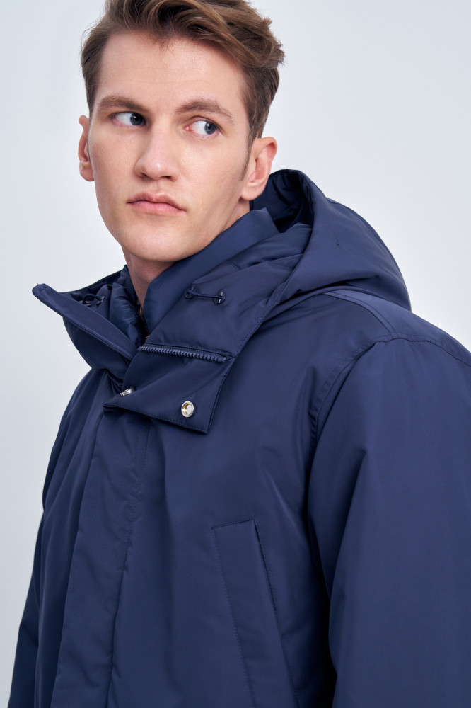 Утепленная куртка с капюшоном и отложным воротником. Внутри наполнитель из утиного пуха — мягкий, лёгкий и долговечный при должном уходе материал. Удобный капюшон и воротник-стойка, а также специальные пропитки материала верха защищают от ветра и осадков. Прямой силуэт модели обеспечивает комфортную посадку и свободу движений.