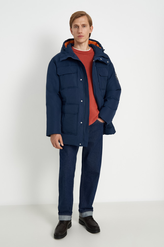Легендарная «Аляска» вернулась в коллекцию! Материал верха выполнен из прочной плащевой ткани с водоотталкивающей пропиткой, которая защитит от непогоды. Внутри — утеплитель из натурального утиного пуха. Несъемный капюшон с фиксаторами и внутренние утяжники на талии позволяют регулировать посадку для большего комфорта. Фирменный бэйдж с медведем подчеркивает узнаваемость модели. На рукавах — теплые вязаные манжеты, а 12 карманов (4 внутренних и 8 внешних) отвечают за практичность.