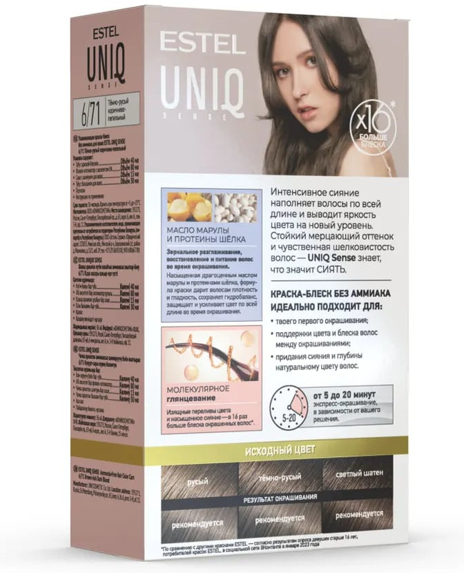 Краска-блеск для волос без аммиака, оттенок 6/71 Эспрессо со льдом | Uniq sense | Estel