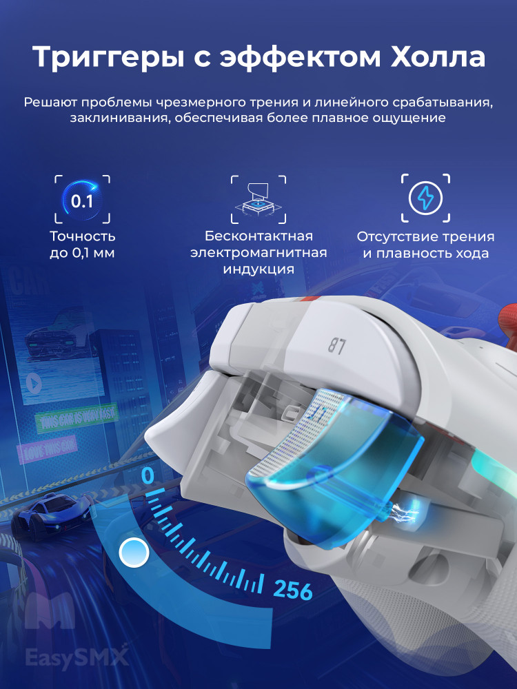 • датчики Холла на триггерах и стикерах для повышения точности и долговечности, что снижает вероятность износа и обеспечивает стабильность отклика
