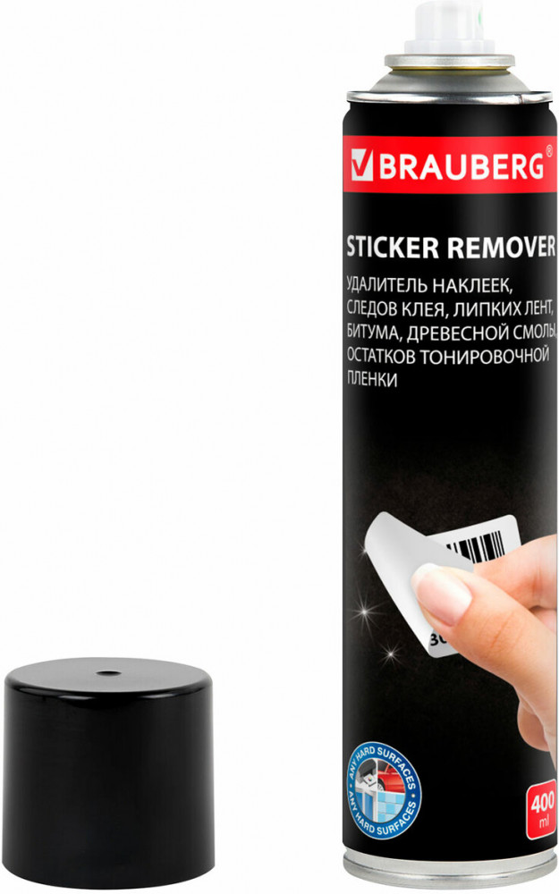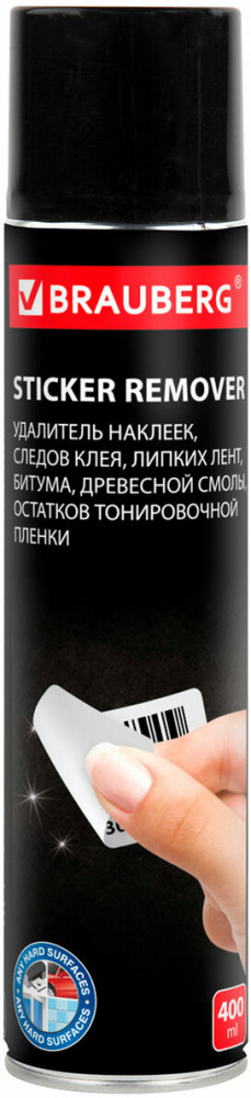 Средство Brauberg предназначено для быстрого и эффективного удаления остатков клея, клейкой ленты, тонировочной пленки, битума, информационных наклеек и рекламы. Средство обеспечивает быстрое и безопасное удаление остатков клея, различных клейких лент, самоклеящихся этикеток, наклеек и жевательной резинки с твердых поверхностей в домашних условиях, офисе, на производстве. После распыления эффективно растворяет остатки клея без повреждений и царапин на поверхности.