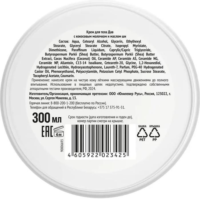 Dove Крем для тела с кокосовым молочком и маслом ши