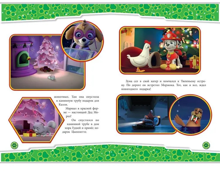 Зимние приключенияВ данный момент этот товар отсутствует в продаже. Возможно, у нас найдется аналогичный или похожий товар здесь. Серия: Щенячий патруль Эта книга познакомит вашего малыша с новыми приключениями любимых героев команды «Щенячий патруль». Отважные щенки во главе с Райдером спасут урожай от снега, познакомятся с робопсом, который управляет патрулевозом, а также помогут Джейку выбраться из снежной ловушки. А еще спасателям предстоит разгадать тайну снежного чудища! Яркие истории с красочными иллюстрациями не оставят вашего ребенка равнодушным. Книга подарит положительные эмоции не только детям, но и взрослым! Скорее переворачивай странички! Отважным щенкам всё по зубам! |