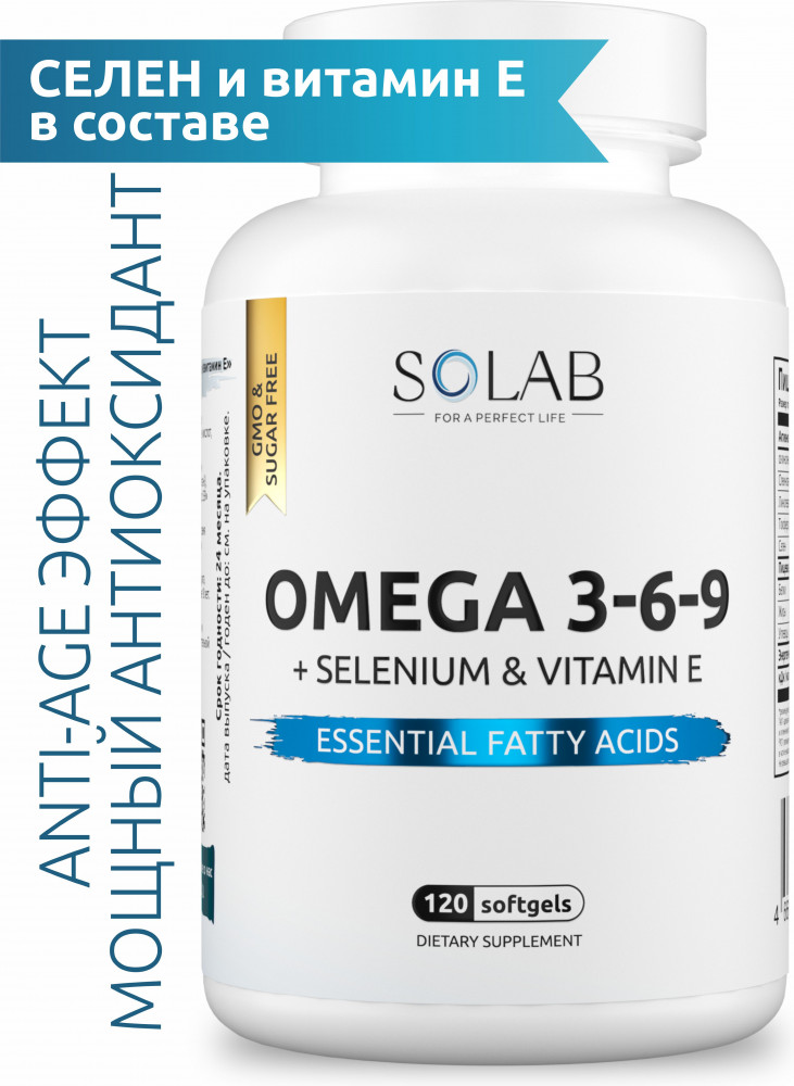 Solab Капсулы «Омега 3-6-9 с селеном и витамином Е»+217 упаковка без запаха эффективность производитель