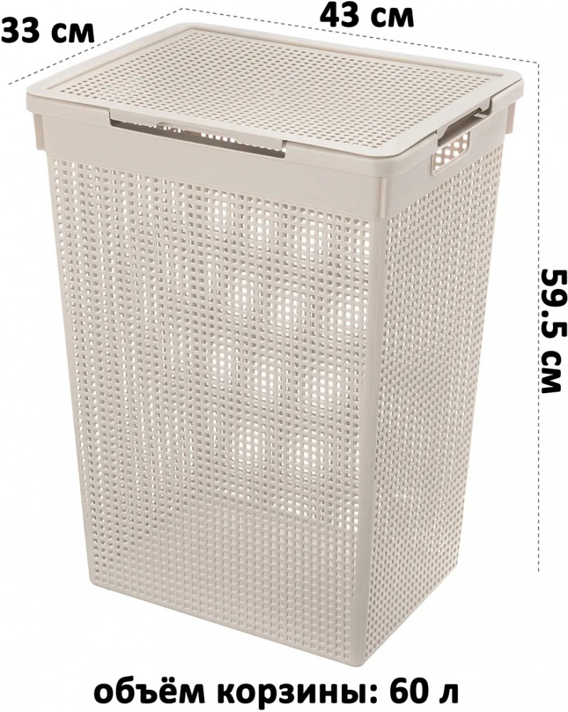 Корзина для белья с крышкой размером 43×33×59,5 см и объемом 60 литров выполнена из прочного пластика — полипропилена. Этот материал не выделяет вредных веществ. Стены белого контейнера имеют декоративные отверстия, которые являются не только элементом дизайна, но и выполняют роль вентиляции. Пластиковая корзинка — это элегантное и функциональное решение для организации хранения чистого и грязного белья. Можете использовать в ванной или на кухне как органайзер для бытовой химии и хозяйственного инвентаря. Бельевая корзинка станет незаменимым помощником в процессе стирки вашей одежды! Имеет вместительное пространство как для маленьких, так и крупных вещей, например, полотенец. Корзину с крышкой можно использовать в комнате в качестве ящика под детские игрушки. Это прекрасное решение для тех, кто ценит не только удобство и функциональность, но и стильный дизайн. Большая корзина для белья поможет не только организовать порядок, но и станет стильным элементом декора вашего дома!