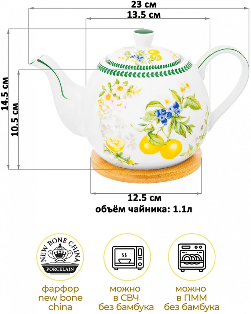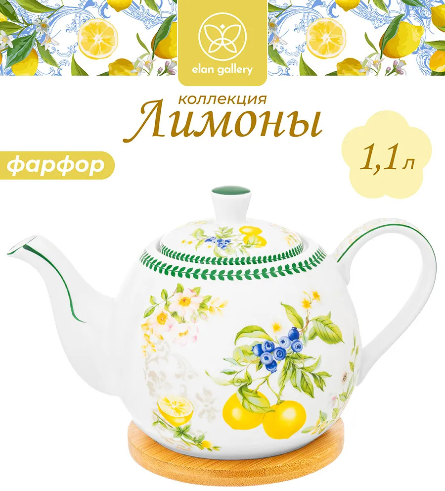 Elan Gallery Чайник заварочный на бамбуковой подставке «Лимоны»-25% +320