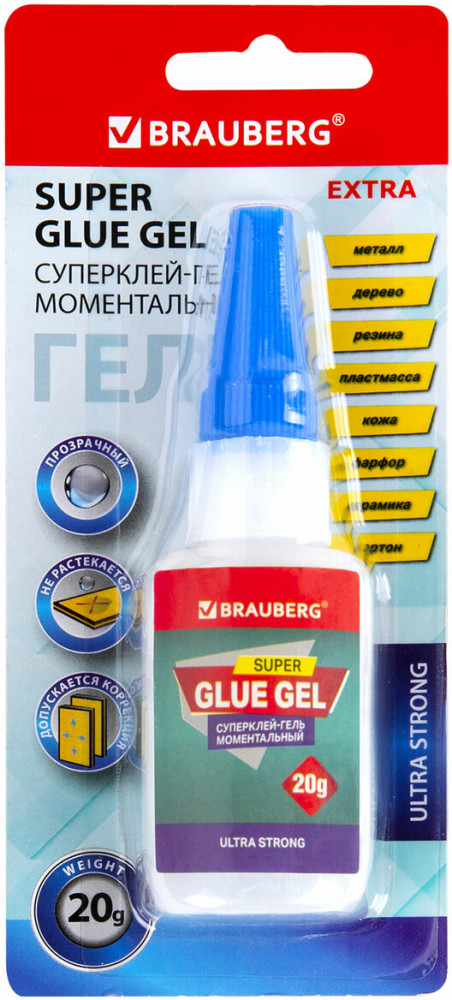 Клей-гель моментальный ультрапрочный Brauberg Extra в большой фасовке незаменим в быту! Применяется для склеивания изделий из пластмассы, дерева, резины, кожи. Идеален для пористых и неровных поверхностей. Подходит для работ на вертикальной поверхности.