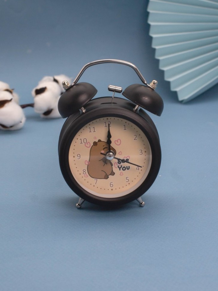 Toki Часы-будильник «Capybara, see you»В данный момент этот товар отсутствует в продаже. Возможно, у нас найдется аналогичный или похожий товар здесь. Серия: I like gift Эти будильники в классическом стиле с двойными колокольчиками украшены забавным рисунком капибарой на циферблате, что придаёт им уникальный и милый вид. Они представлены в нескольких цветах корпуса: чёрном, синем, белом и красном, что позволяет выбрать вариант по вкусу. Будильники работают от одной батарейки типа АА (напряжение 1.5 В), которая в комплект не входит. |