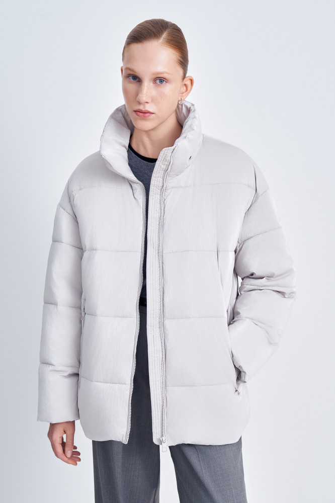 Неизвестно, для чего производитель оставил размерную сетку. Я понимаю сейчас размерам особо доверять нельзя, но размерная сетка - это измерение в сантиметрах. Куртка больше на 2 размера. Материал - жатка. но совершенно не смотрится, а выглядит, как застиранная шмотка, которую грубо выжали и так высушили. Визуально - старье из Секонда.