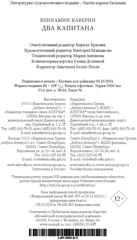 💳 Оплатить за товар можно при получении 🇰🇿 Есть бесплатная доставка по Казахстану от 1 дня 🎁 Копите бонусы с каждой покупки Серия: Азбука Premium. Русская проза «Два капитана» — самый известный и любимый читателями роман Вениамина Каверина. Судьба его главного героя Сани Григорьева, по словам автора, «полна труда, вдохновения и любви к своей Родине и своему делу». В ней нашлось место тяжелому беспризорному детству, тяготам войны, путешествию на Северный полюс в поисках загадочно исчезнувшей экспедиции и, конечно, любви. Роман переведен на многие языки мира, был дважды экранизирован, а его героям поставлен памятник в родном городе автора, Пскове. |