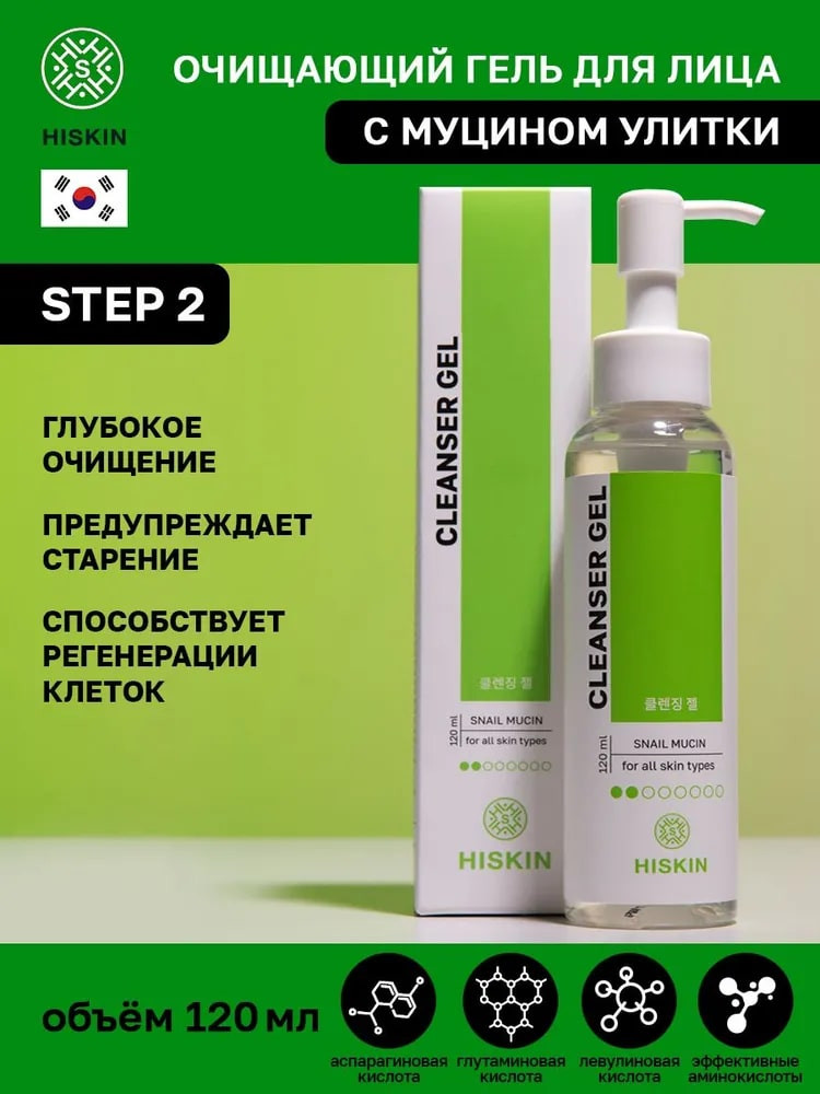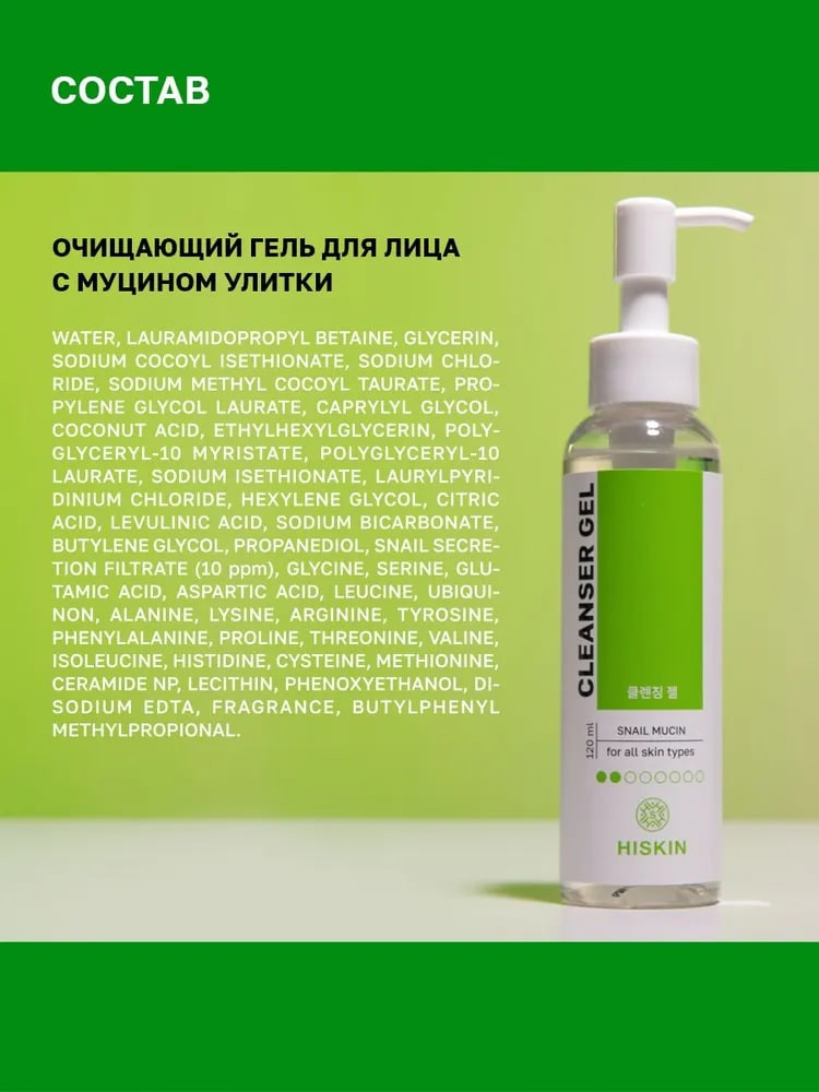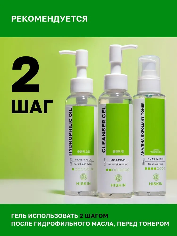 Hiskin Гель для умывания с муцином улитки «Cleanser gel»