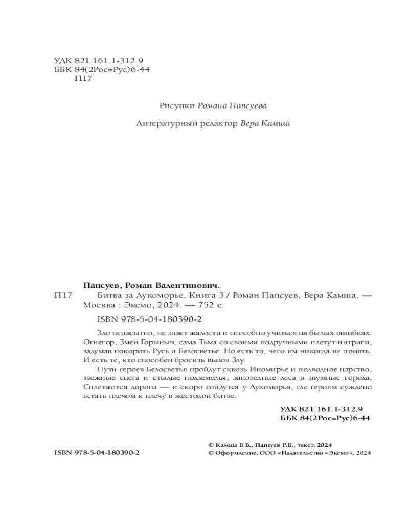 💳 Оплатить за товар можно при получении 🇰🇿 Есть бесплатная доставка по Казахстану 🎁 Копите бонусы с каждой покупки Серия: Новые сказки Старой Руси Зло ненасытно, не знает жалости и способно учиться на былых ошибках. Огнегор, Змей Горыныч, сама Тьма со своими подручными плетут интриги, задумав покорить Русь и Белосветье. Но есть то, чего им никогда не понять. И есть те, кто способен бросить вызов Злу. Пути героев Белосветья пройдут сквозь Иномирье и подводное царство, таёжные снега и стылые подземелья, заповедные леса и шумные города. Сплетаются дороги — и скоро сойдутся у Лукоморья, где героям суждено встать плечом к плечу в жестокой битве. |