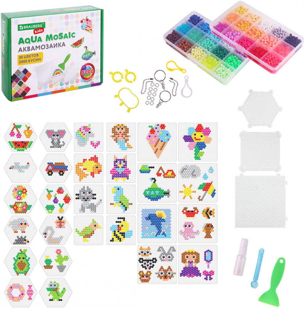 Серия: Kids Аквамозаика Brauberg Kids — это набор специальных бусин для создания картинок на трафаретах, входящих в набор. Бусины склеиваются между собой, если побрызгать на них обычной водой. Аквамозаика развивает у ребёнка усидчивость и креативное мышление.