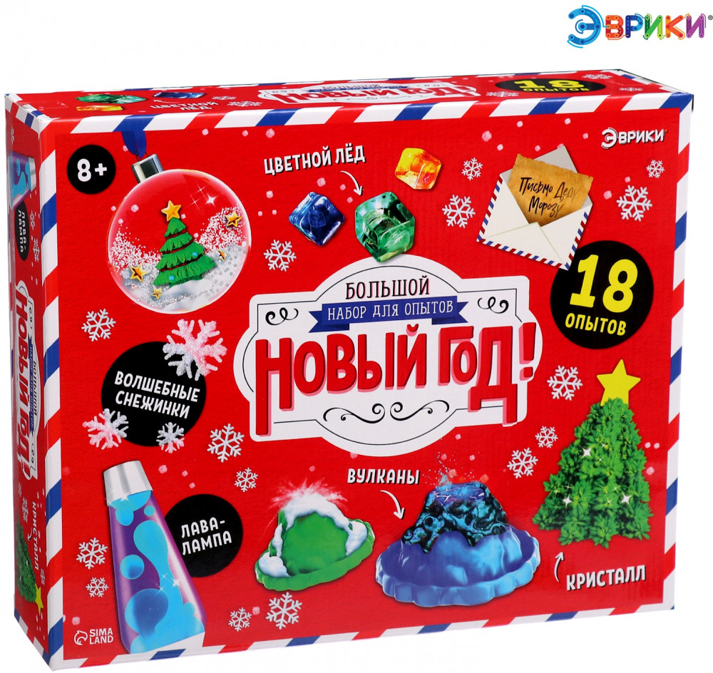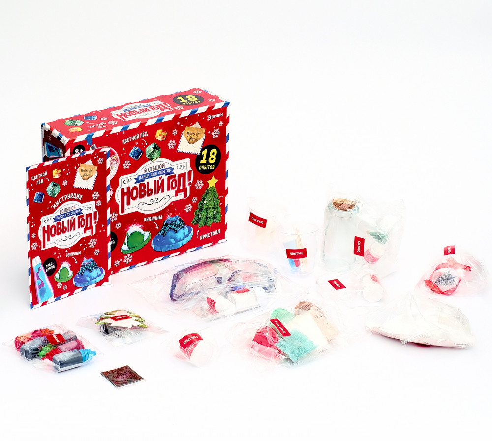 С этим набором для опытов ребёнок узнает что такое химический мороз, сделает искусственный снег и проведёт ещё 16 новогодних и увлекательных экспериментов! Наука — совсем не сложно, а занимательно и весело, если изучать её правильно!