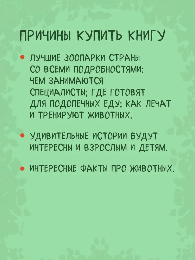 💳 Оплатить за товар можно при получении 🇰🇿 Есть бесплатная доставка по Казахстану от 1 дня 🎁 Копите бонусы с каждой покупки Серия: Я хочу все знать! Все дети любят ходить в зоопарк! Здесь можно весело провести время и увидеть удивительных животных — панду, слона, жирафа, ламу, капибару... Но что стоит за этим развлечением? И что такое зоопарк для его обитателей — неволя или единственный способ выжить? |
