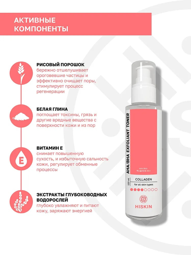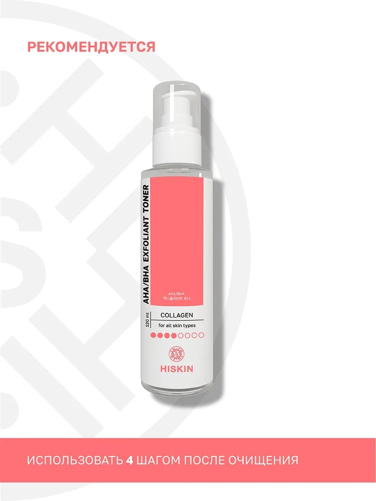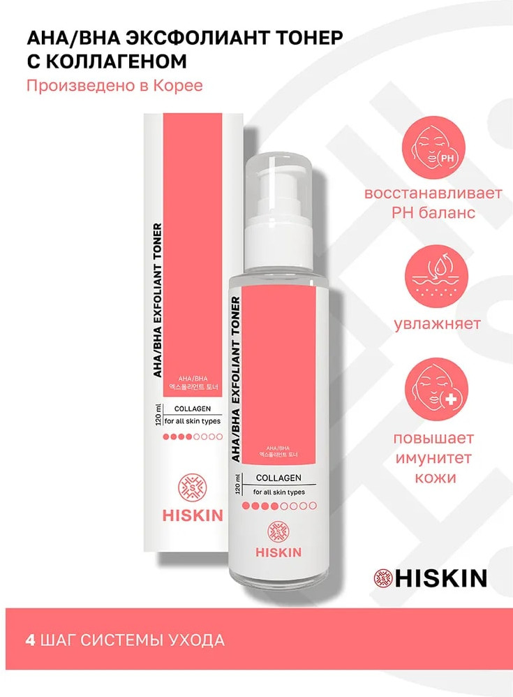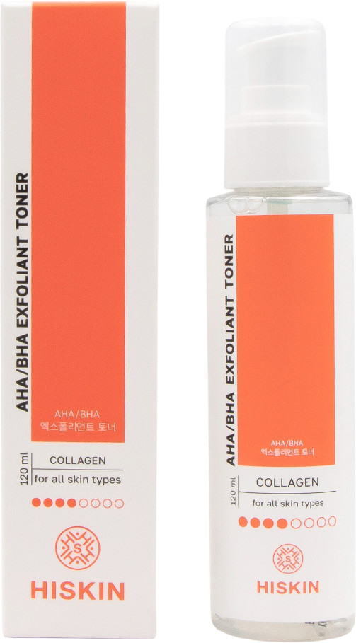 Hiskin Тонер-эксфолиант для лица с коллагеном «AHA/BHA Exfoliant Toner»