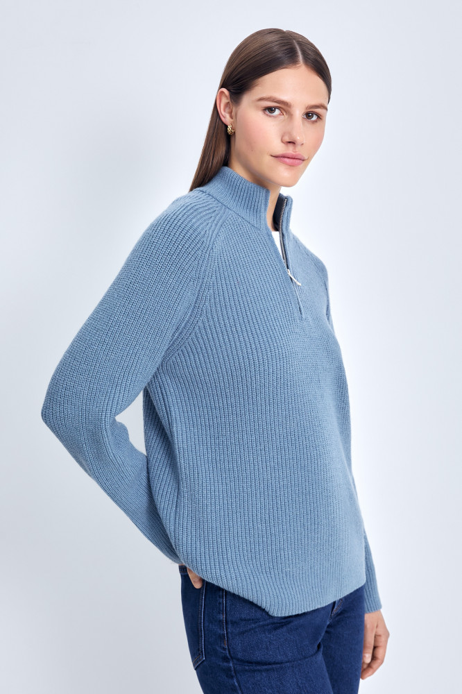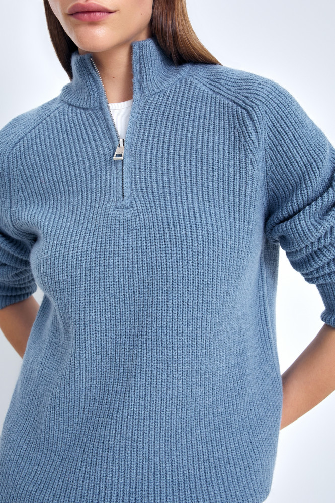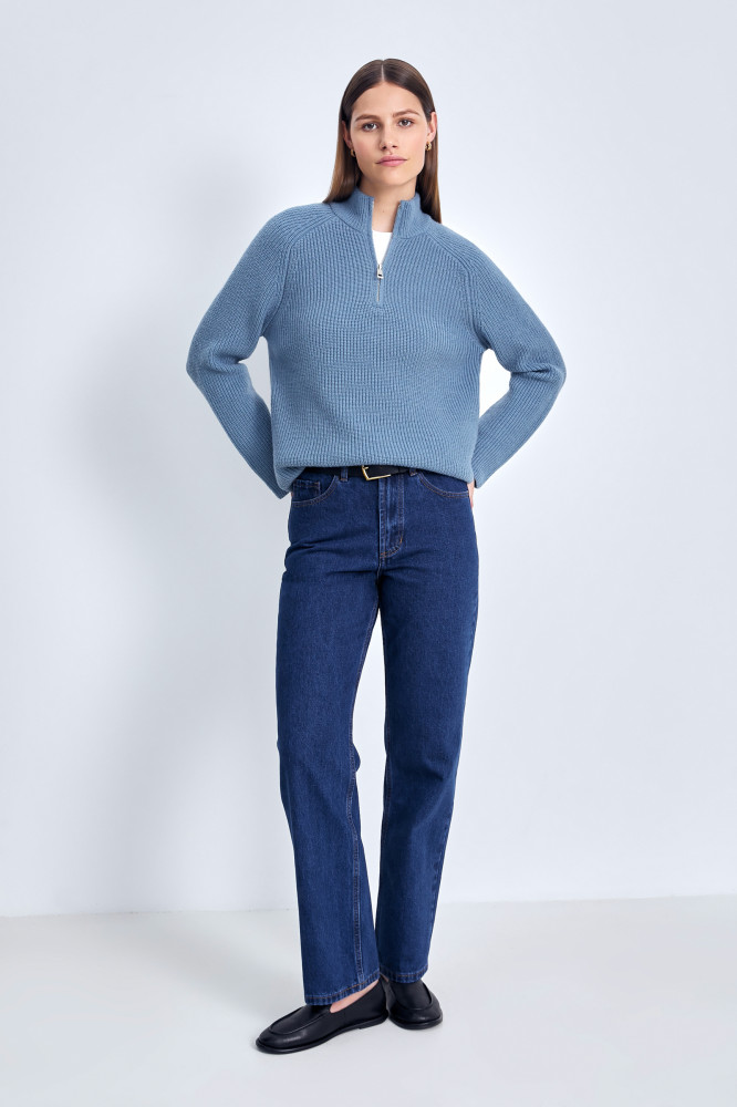 Женский джемпер с длинным рукавом станет отличным дополнением стильного и комфортного повседневного образа. Изготовленный из высококачественного материала с добавлением шерсти этот джемпер обеспечивает тепло и уют в прохладные дни. Элегантный воротник-стойка сделает образ более изящным и комфортным. Практичная молния позволяет регулировать степень открытости и обеспечивает легкость в носке. Лаконичный дизайн легко сочетать с любым гардеробом.