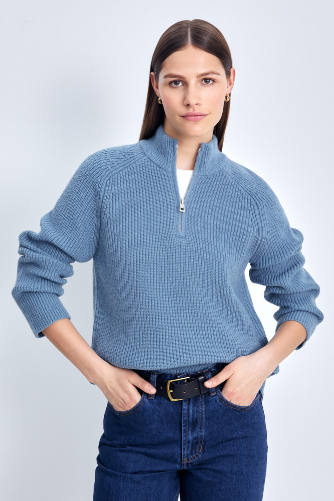 Женский джемпер с длинным рукавом станет отличным дополнением стильного и комфортного повседневного образа. Изготовленный из высококачественного материала с добавлением шерсти этот джемпер обеспечивает тепло и уют в прохладные дни. Элегантный воротник-стойка сделает образ более изящным и комфортным. Практичная молния позволяет регулировать степень открытости и обеспечивает легкость в носке. Лаконичный дизайн легко сочетать с любым гардеробом.