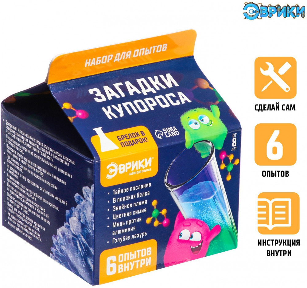 С набором для опытов «Загадки купороса» ребёнок узнает об удивительных свойствах веществ, проведёт 6 увлекательных опытов и поразит друзей.