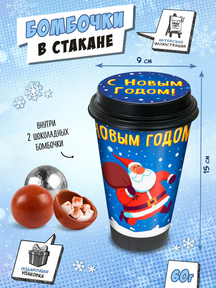 ChokoCat Набор шоколадных бомбочек с маршмеллоу «Дед Мороз спешит»В данный момент этот товар отсутствует в продаже. Возможно, у нас найдется аналогичный или похожий товар здесь. Набор из двух шоколадных бомбочек с маршмеллоу в красочном стакане с крышкой. Приготовление какао из бомбочек максимально просто, инструкция с картинками по приготовлению находится на упаковке. |