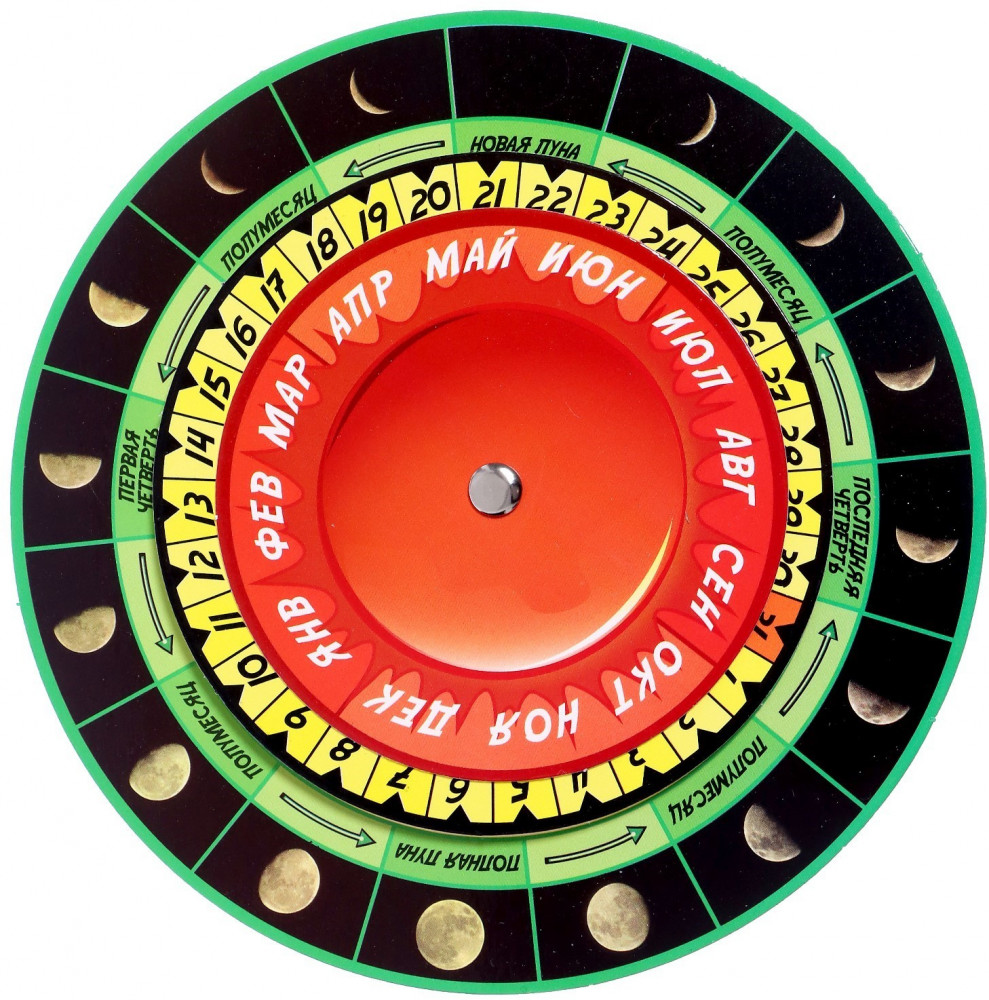 Достаньте из листов картона специальные карточки с изображением фаз Луны, дней, месяцев и карточку Луны. Положите их друг на друга так, чтобы отверстия на карточках совпадали, и закрепите скрепкой из набора. Теперь покрутите карточки так, чтобы они показывали сегодняшнюю дату, и поставьте картонный указатель на нужную фазу Луны. Обратите внимание на то, какая фаза Луны показана на карточке и просчитайте фазу Луны через 1 неделю, 10 дней, 20 дней.