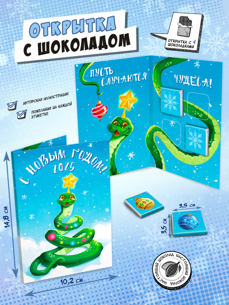 ChokoCat Открытка с шоколадом «Змея-ёлка»