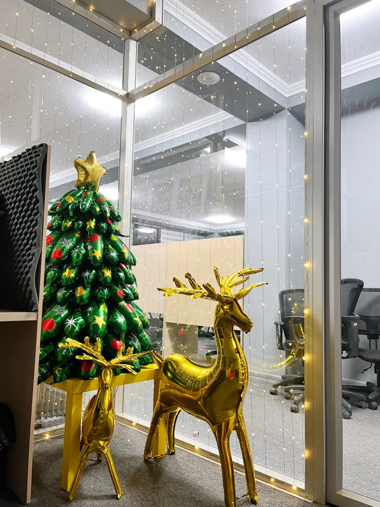 Создайте незабываемую атмосферу праздника с этим набором новогоднего декора! В комплект входят надувная ёлка и два стильных оленя, выполненных из прочной алюминиевой фольги. Эти декоративные элементы отлично подойдут для украшения витрин, магазинов, офисов или дома.