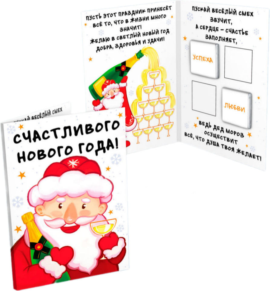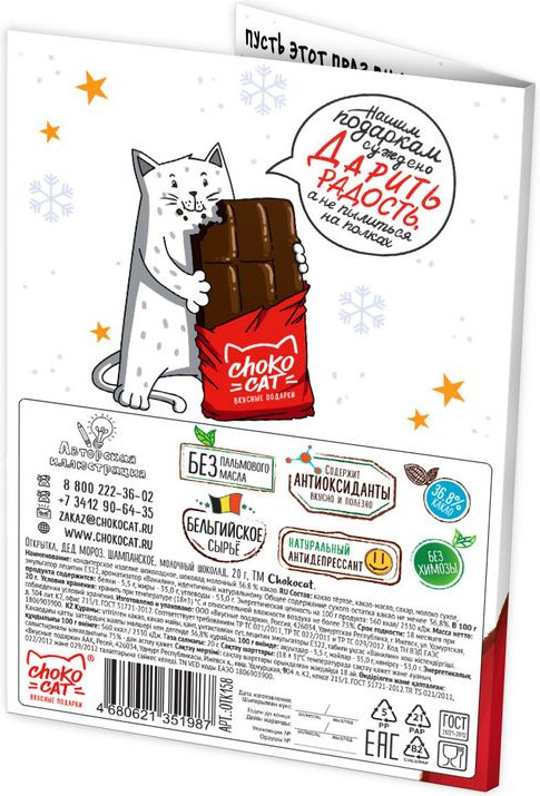 ChokoCat Открытка с шоколадом «Дед мороз. Шампанское»