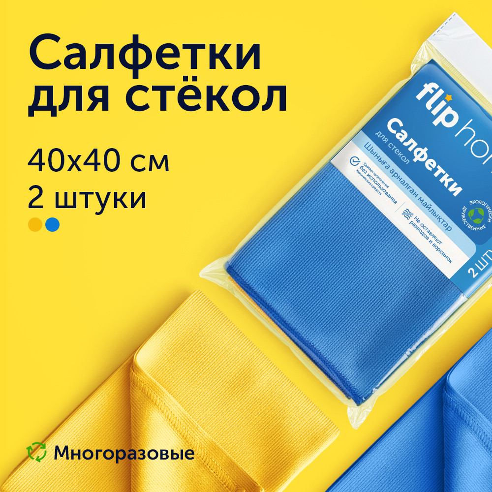 Flip Home Салфетки для стекол-25% +39 без разводов большой размер моет без химии