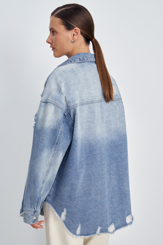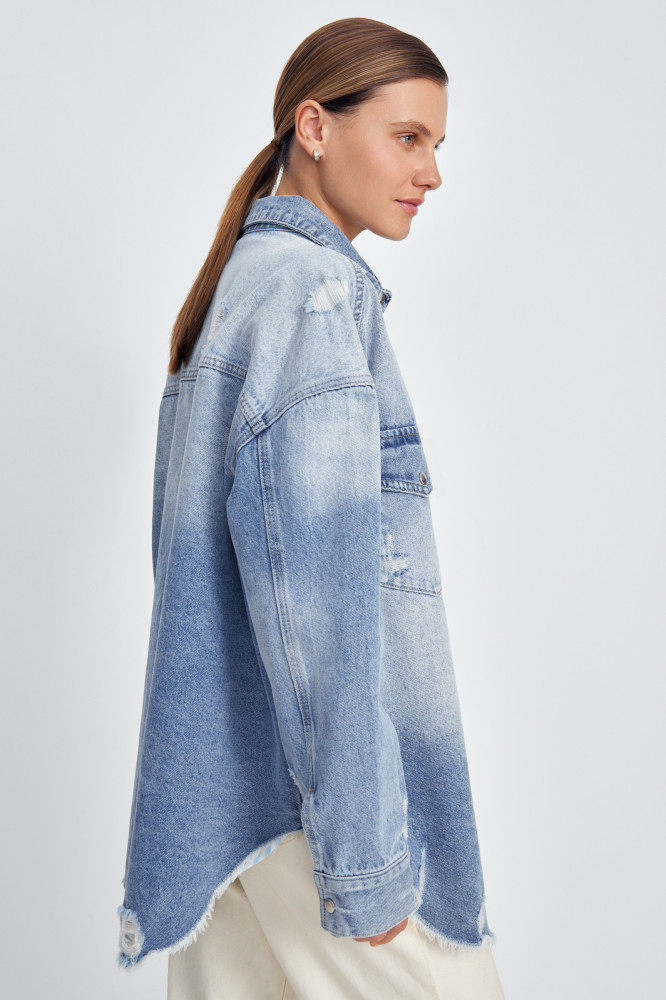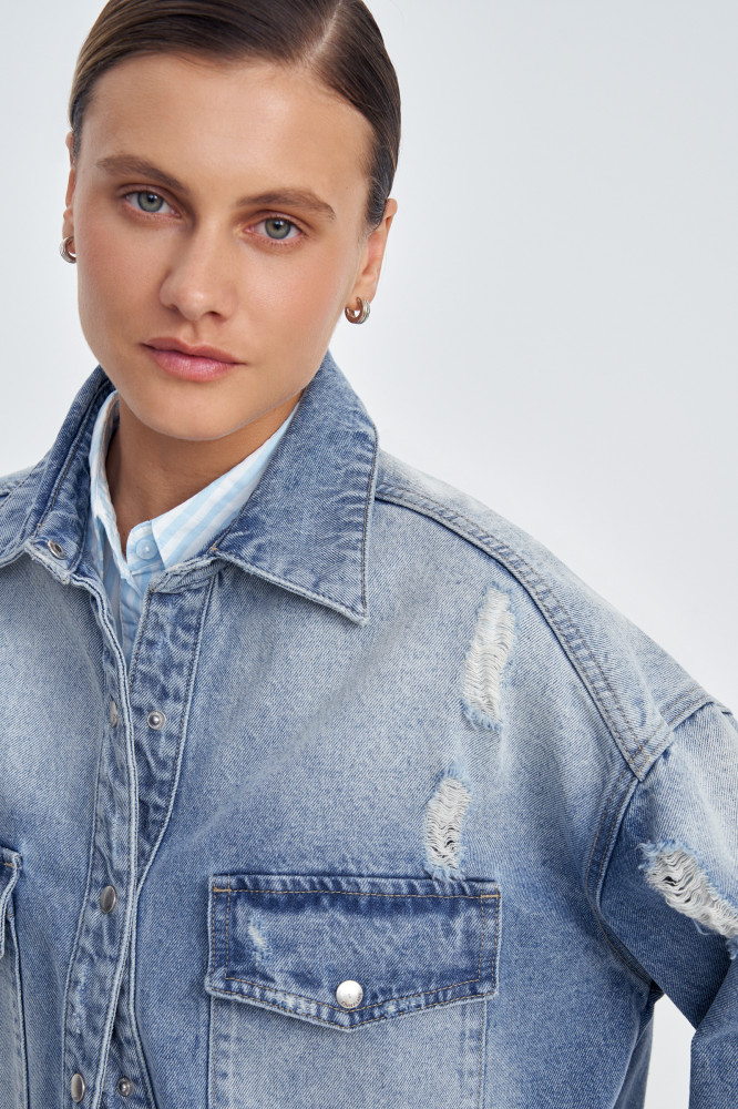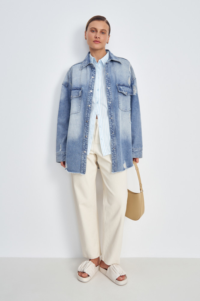 Женская джинсовая куртка в стиле оверсайз отлично подойдет для утепления образа в прохладную погоду. Прямой и свободный силуэт модели позволяет сочетать вещь с объемными лонгсливами и толстовками. Лаконичный дизайн куртки легко дополнит любой образ, а качественный материал обеспечит комфорт в течение всего дня.